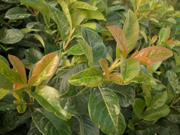 | Kurzbeschreibung | Relativ kleinwüchsiger, immergrüner Kirschlorbeer mit bronzefarbenem Austrieb. |